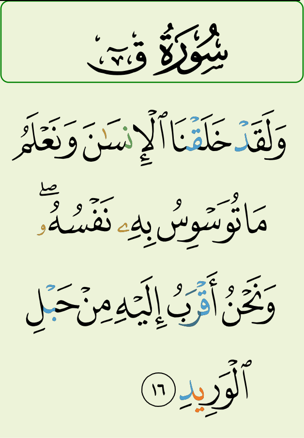 Dan sungguh Kami telah menciptakan manusia dan mengetahui apa yang dibisikkan oleh hatinya, dan Kami lebih dekat kepadanya dari pada urat lehernya (QS 50:16).