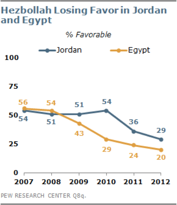 Grafik 3: Dukungan terhadap Hezbollah di Mesir dan Yordania