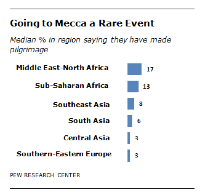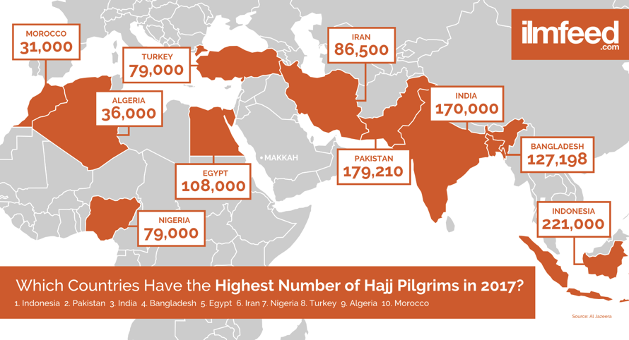 Jamaah haji datang dari berbagai penjuru dunia. Yang terbanyak adalah jamaah tuan rumah yang totalnya diperkirakan mencapai 600,000 orang. Di luar jamaah tuan rumah, jamaah Indonesia paling banyak, sekitar 10% dari angka total. Totalnya setara dengan 2.0 kali total jamah Mesir, 2.6 kali total jamaah Iran, dan 2.8 kali total jamaah Turki (lihat Grafik 1).