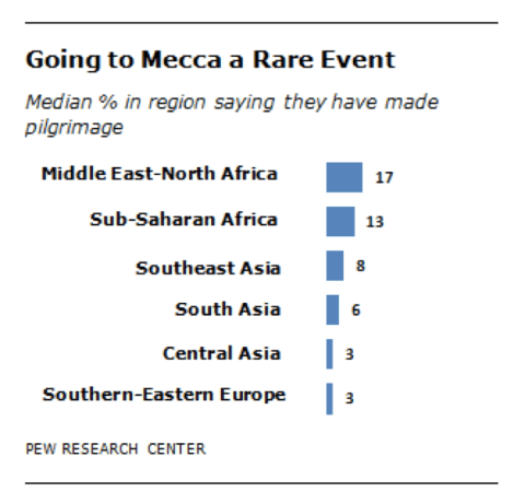 Sekalipun penyuplai jamaah haji terbesar (setelah tuan rumah) Indonesia secara proporsional bukanlah “negara haji”. Menurut PEW Research Center, proporsi penduduk Indonesia yang mengaku pernah haji hanya 3%. Angka ini relatif kecil, lebih kecil dari rata-rata proporsi Asia Tenggara (lihat Grafik 2).
