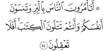 Mengapa kamu menyuruh orang lain (mengerjakan) kebajikan, sedangkan kamu melupakan dirimu sendiri, padahal kamu membaca Kitab (Taurat?) Tidakkah kamu mengerti?