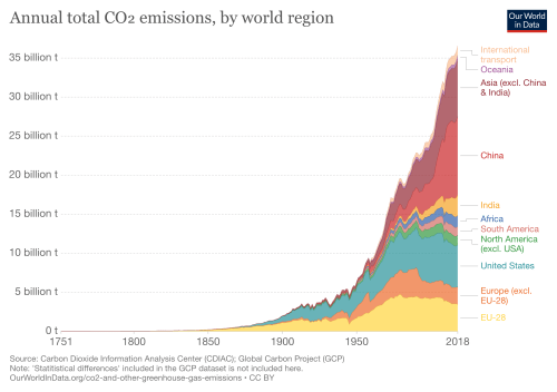 Sepintas kenaikan ini suhu global kecil tapi dampaknya luar biasa dan dapat dirasakan secara global. Kenaikan ini terjadi karena atmosfer bumi dipenuhi CO2 dan gas rumah kaca lainnya. Sekarang ini konsentrasi CO2 di atmosfer bumi sekitar 400 ppm, tertinggi selama 800,000 tahun. Yang bertanggung jawab kita yang secara global memancarkan CO2 ke atmosfer sekitar 36 miliar ton per tahun; angkanya, meningkat (Grafik 2).