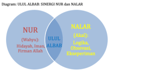 Diagram di atas memetakan tiga tipologi manusia dalam menyikapi Wahyu (Nur) dan Akal (Nalar):